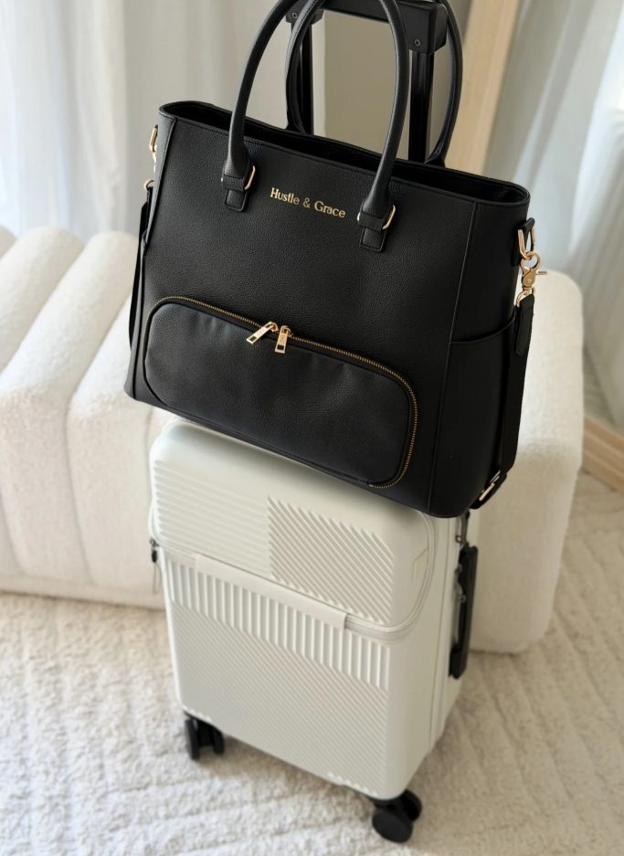 Hi, I’m Iluka-Cindi — founder, creative director, and the heart behind Hustle & Grace™. I built this brand from the belief that women shouldn’t have to choose between beauty and function — between chaos and calm. As a working mum and corporate woman on the Gold Coast, I know exactly what it feels like to juggle meetings, school runs, and life on the go — and still want to look pulled together. My mission is simple: to design pieces and build brands that empower women to carry their lives beautifully. Beyond the products, this is about creating a movement — one that celebrates ambition, grace, and the freedom to live life on your own terms. When I’m not designing or building, you’ll find me sunbaking at the beach, travelling, sipping red wine, or chasing that golden, effortless balance between hustle and ease.
