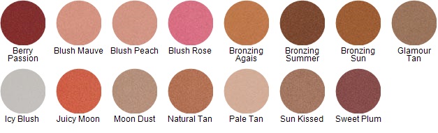 Talc, Mica, Aluminum Starch Octenylsuccinate, Bismuth Oxychloride, Magnesium Carbonate, Zinc Stearate, Isopropyl Palmitate, Polymethyl Methacrylate, Octyldodecyl Stearoyl Stearate, Lanolin Oil, Isostearyl Neopentanoate, Cetyl Alcohol, Tocopheryl Acetate, Octyldodecanol, Tocopherol, Polybutene, Dimethicone, BHT, Parfum (Fragrance) and may contain: [+/- Titanium Dioxide CI 77891, Iron Oxides CI 77491, CI 77492, CI 77499, Carmine CI 75470, Red 36 CI 12085, Red 22 Lake CI 45380, Ultramarines CI 77007, Yellow 5 Lake CI 19140, Ferric Ferrocyanide CI 77510, Red 7 Lake CI 15850, Mica, Silica, Tin Oxide] May contain carmine as a color additive.